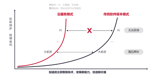 同时,云的大环境下,也意味以云为中心的快速应用开发能力将成为“胜负手”。因为具备规模化、快速迭代能力的云服务使政企创新更简单、更高效。