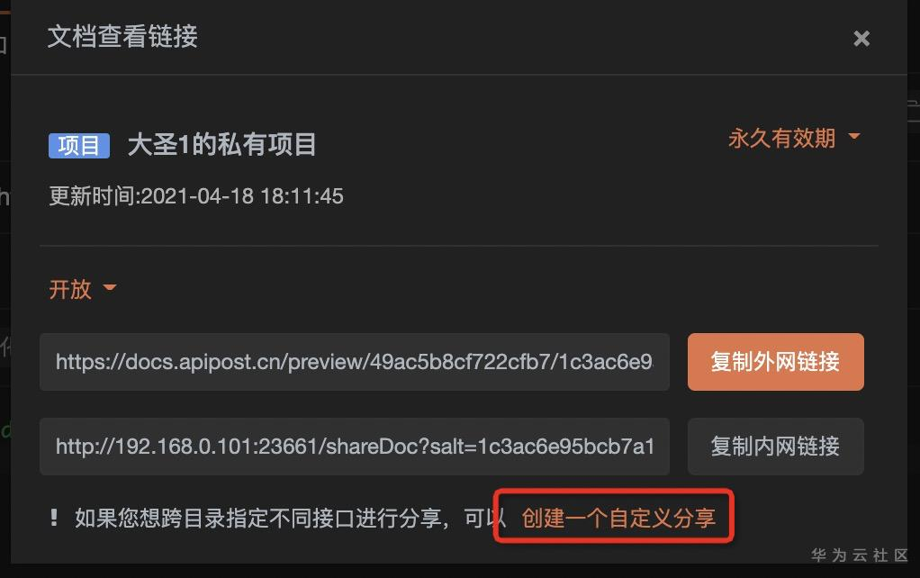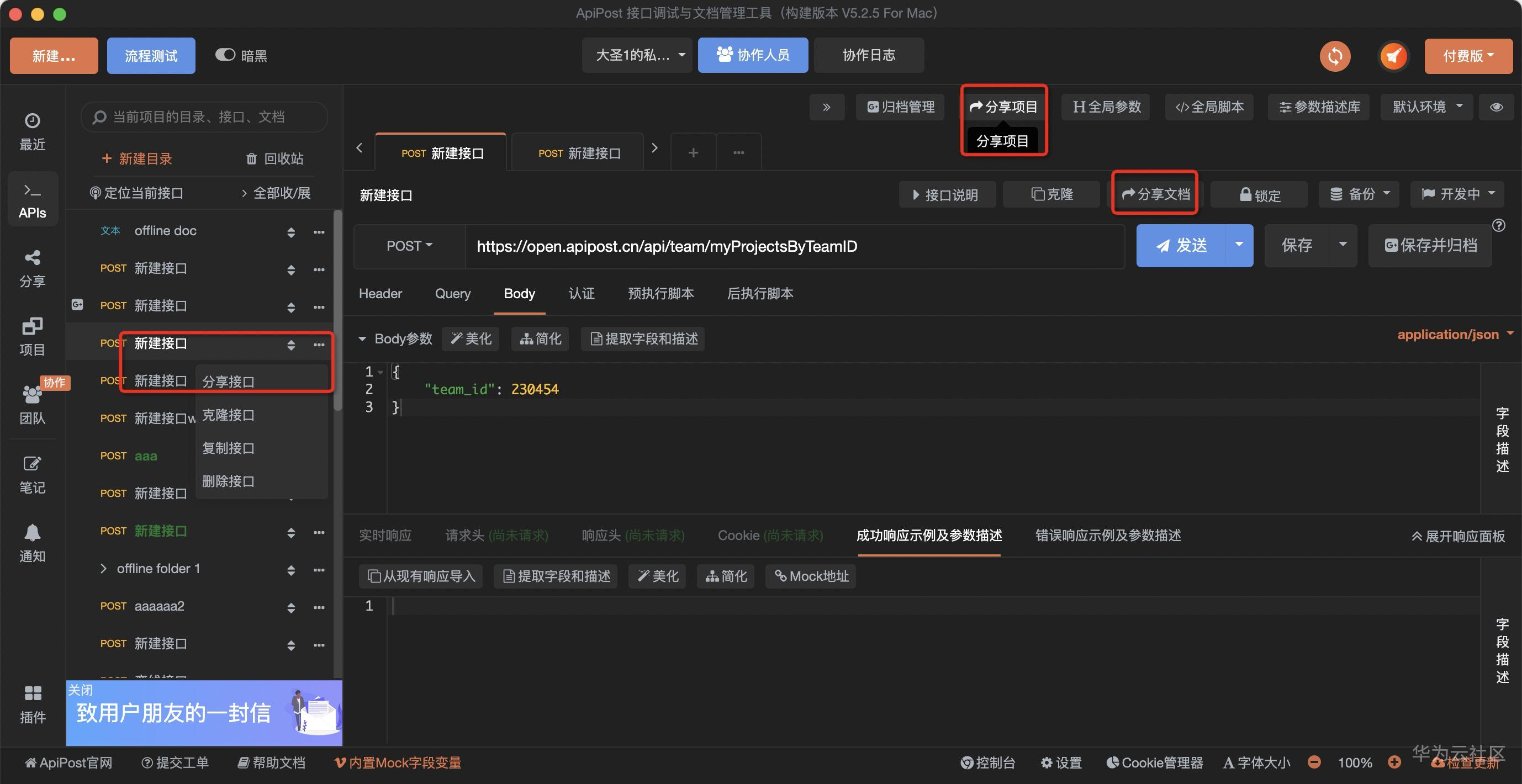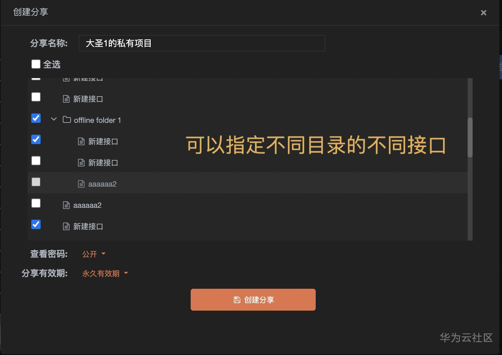 【摘要】 apipost之前的版本只支持单接口、单目录、单项目分享,没办法跨目录指定不同的接口集合,5.2版本开始,解决了这个问题