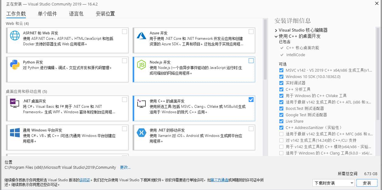 你还需要安装Microsoft Visual Studio 2019. 可以到 https://visualstudio.microsoft.com/zh-hans/downloads/ 下载安装,安装的时候请务必选择:使用C++的桌面开发,其他随意: