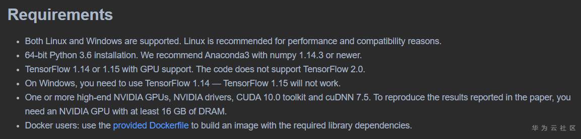 需要安装Python 3.6, Tensorflow 1.14 (On Windows,注意仔细看),需要CUDA10.0cuDNN 7.5,