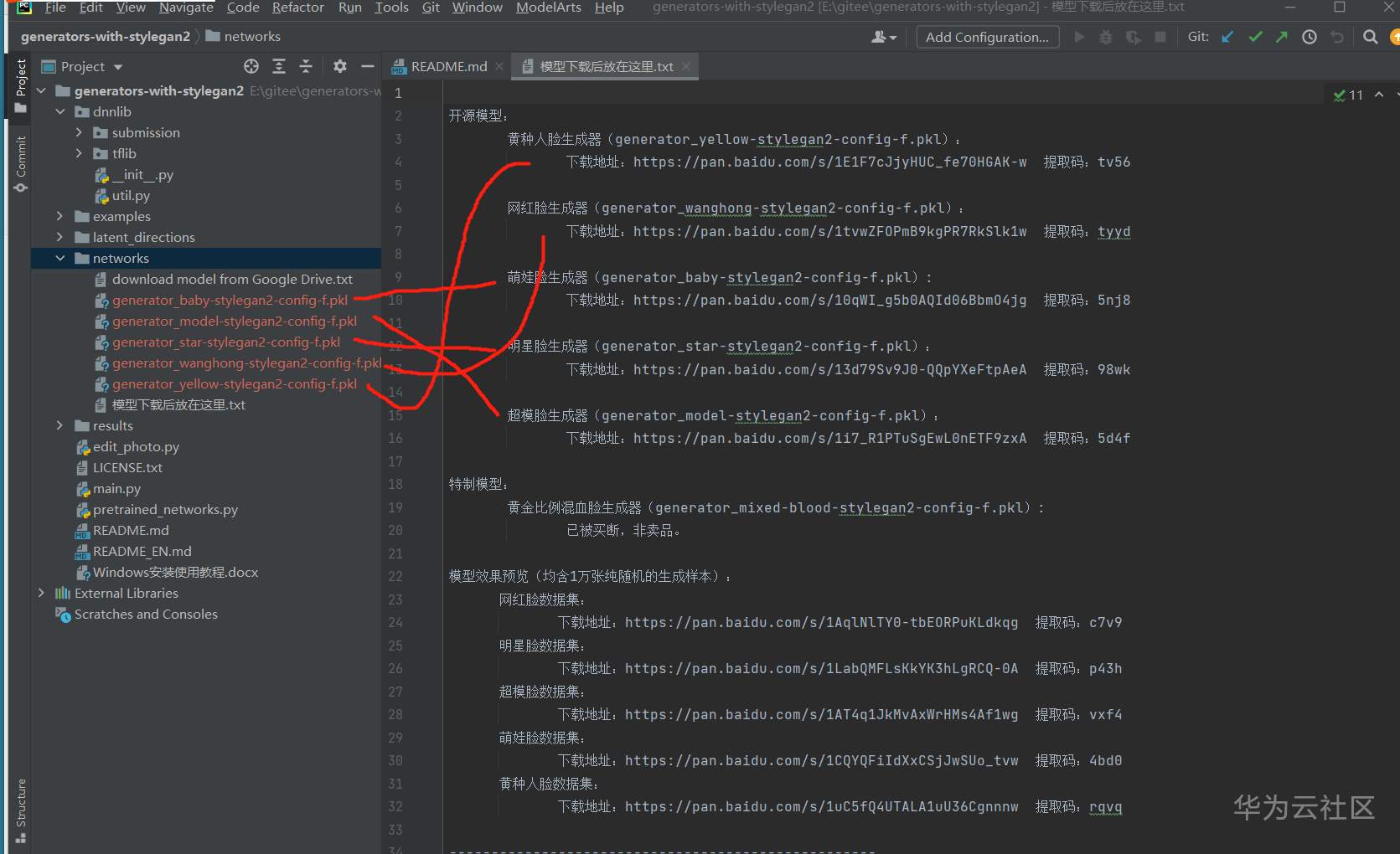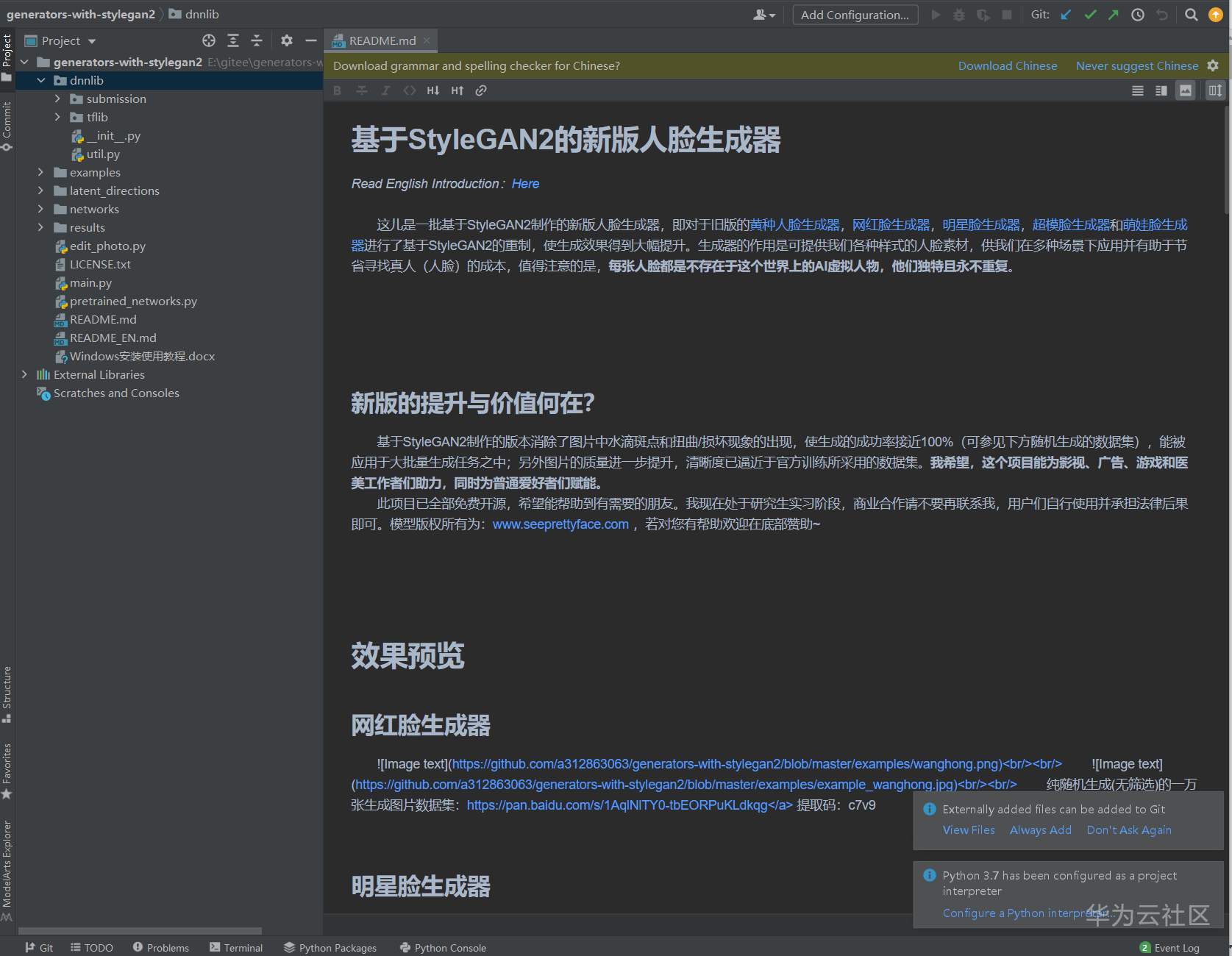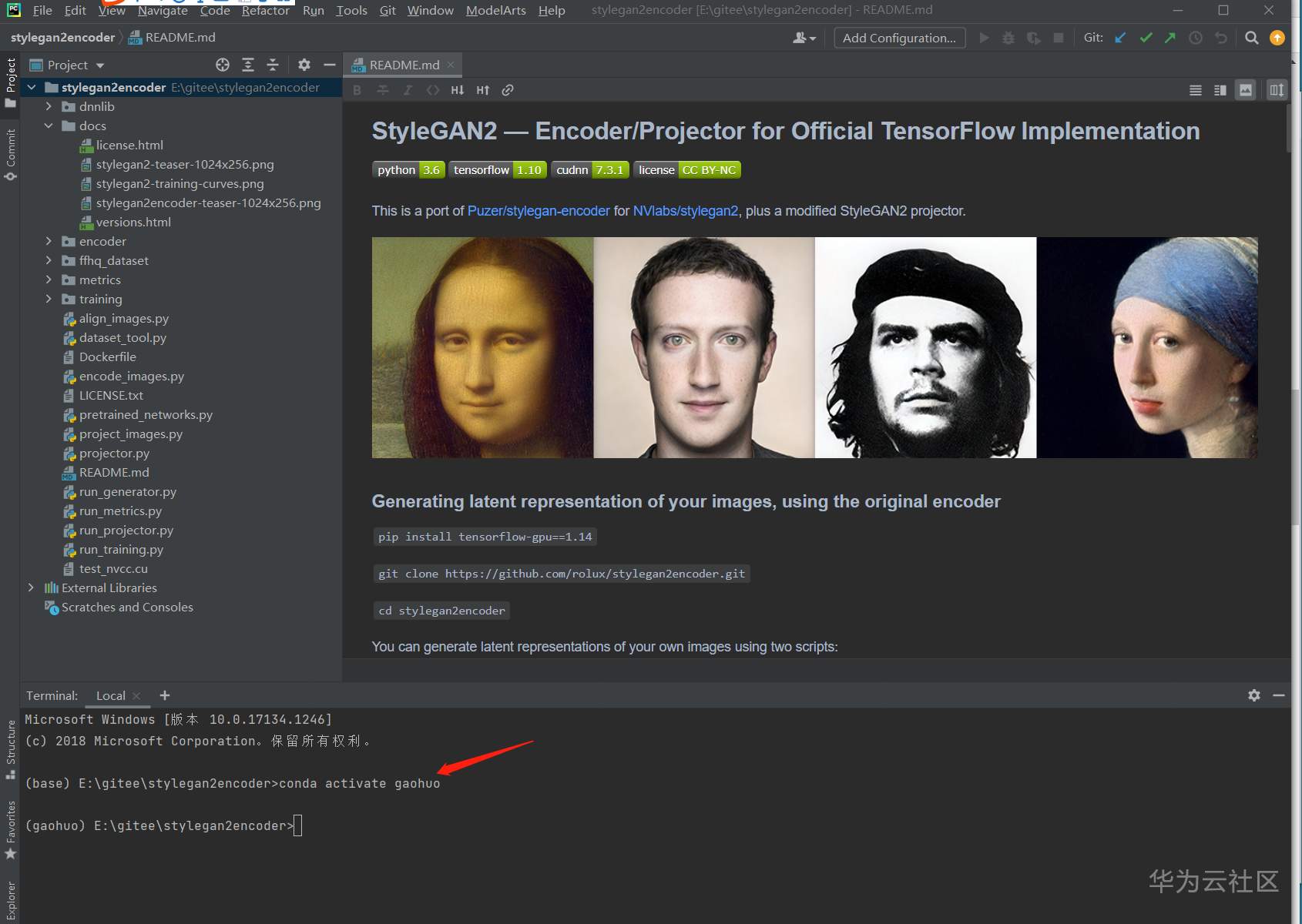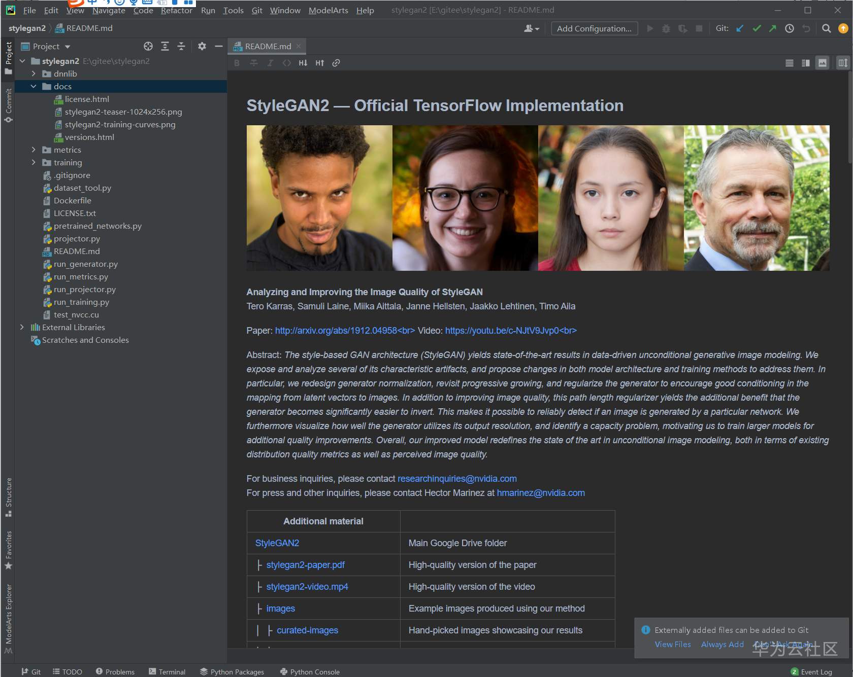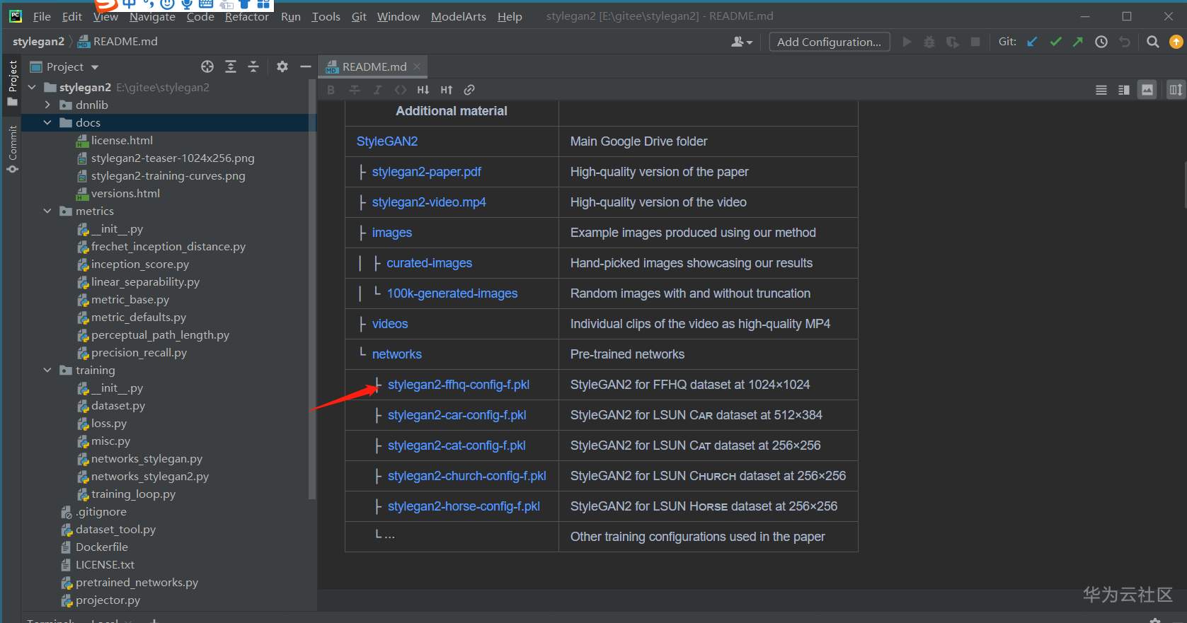 使用PyCharm打开stylegan2目录: