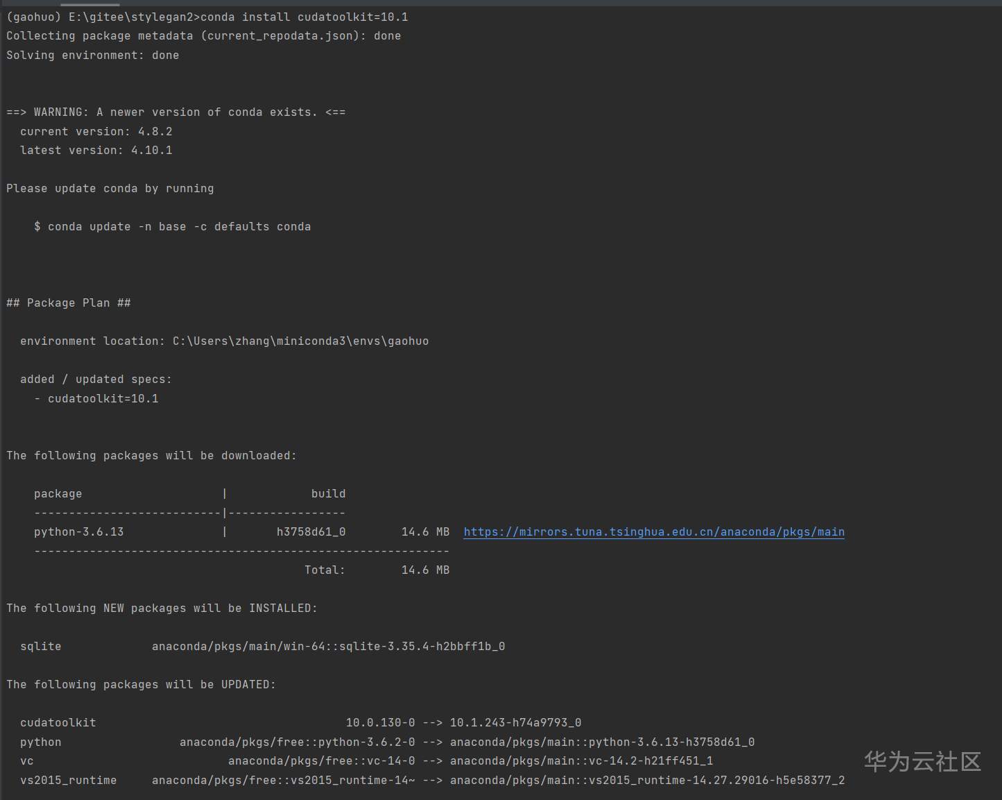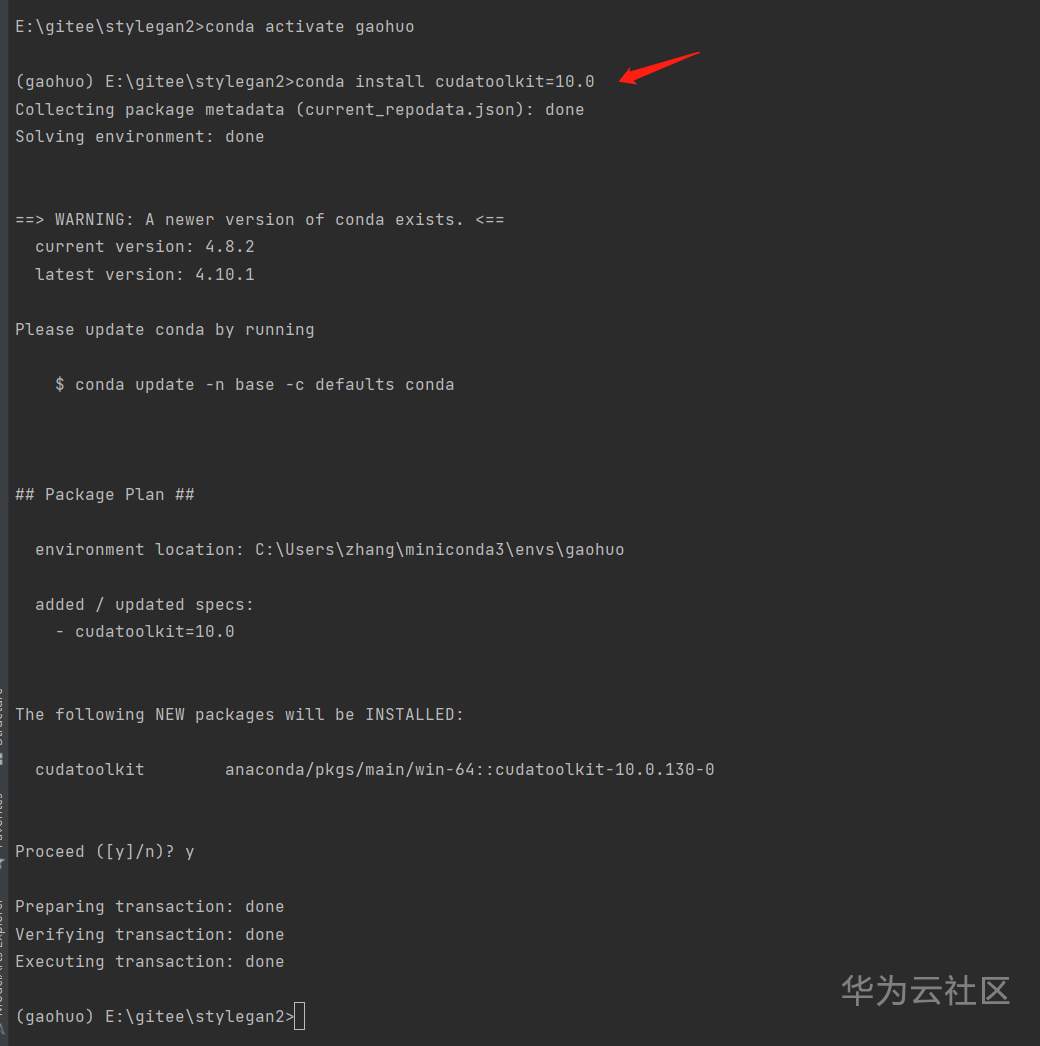 先安装CUDA10.0(请注意是在gaohuo环境里面)