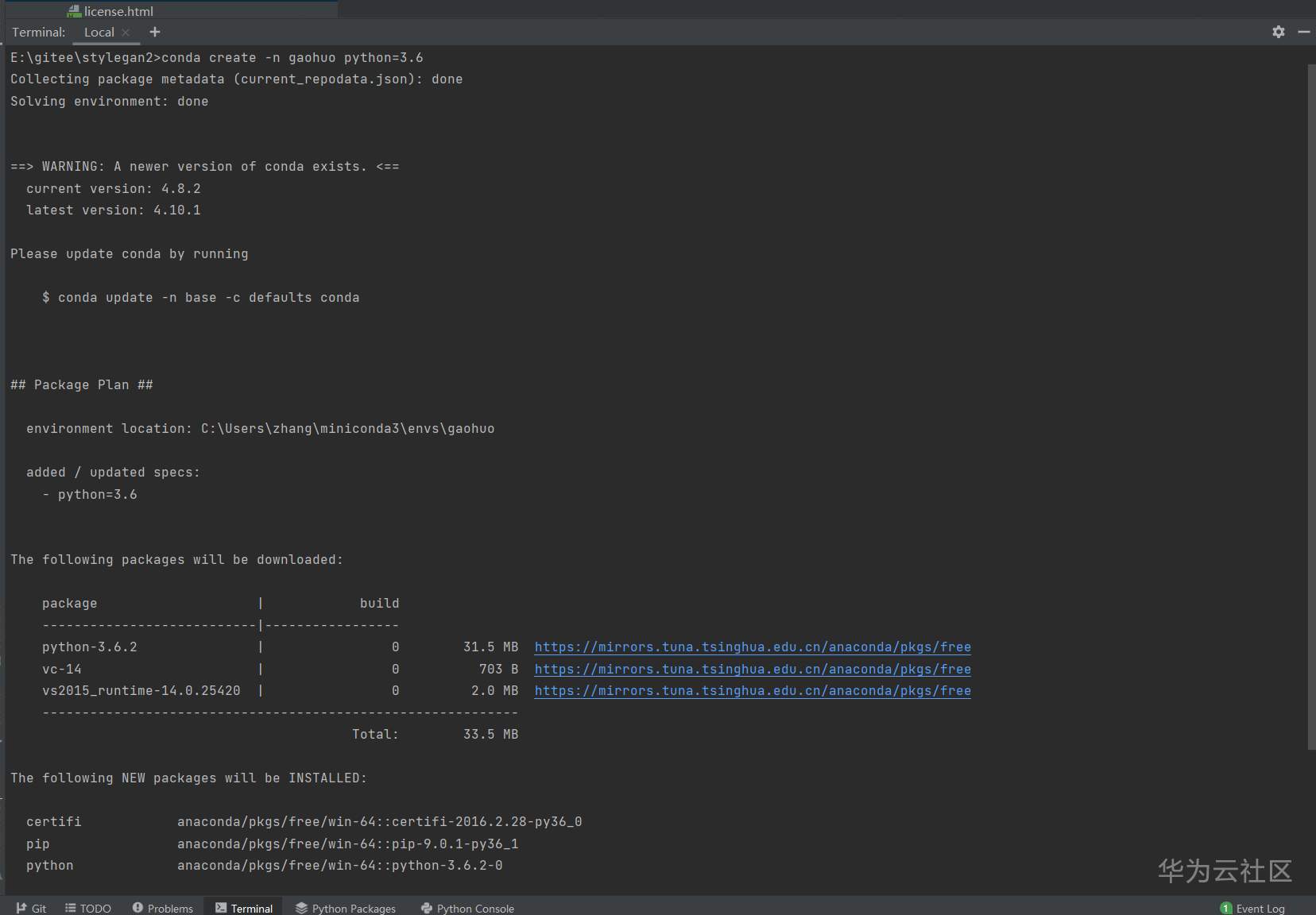 此外,你可以根据 https://bbs.huaweicloud.cn/forum/forum.php?mod=viewthread&tid=119491 一楼的方法安装好社区版不要钱的 PyCharm。