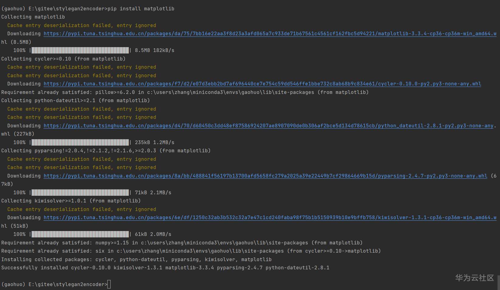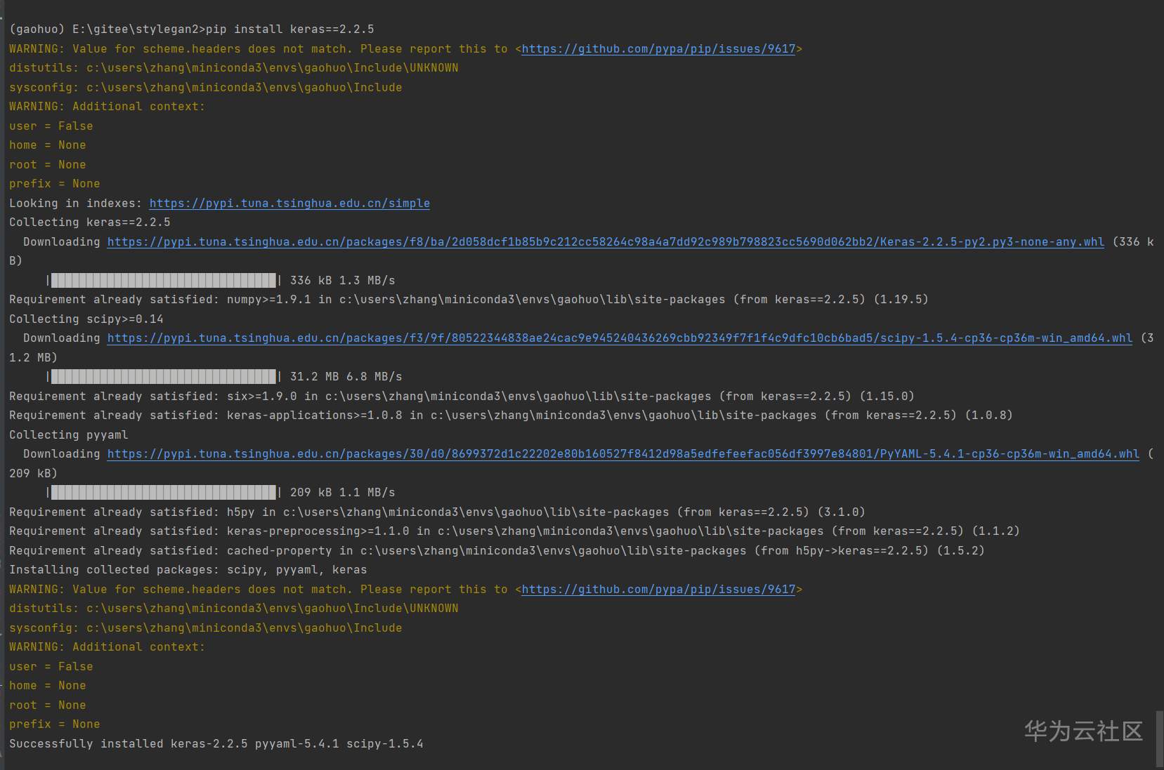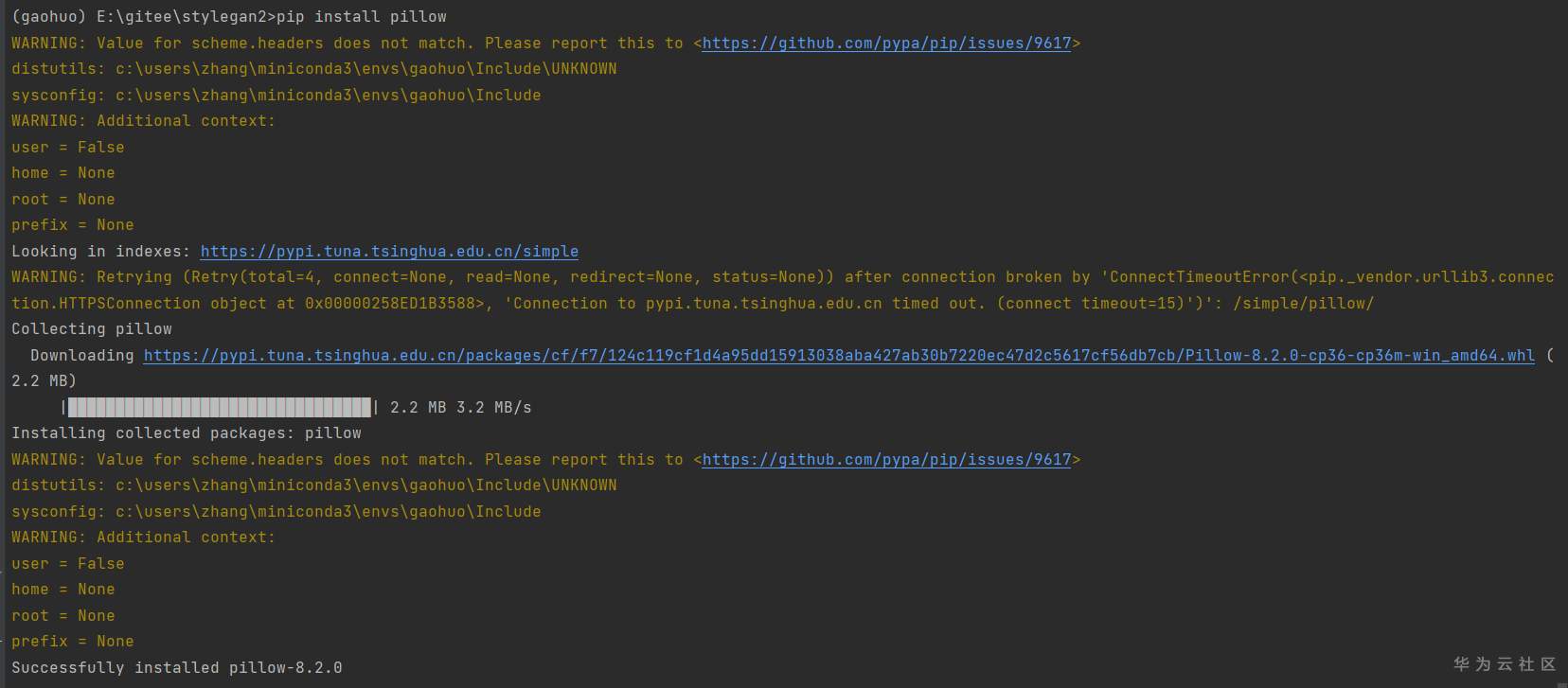 包有点大(287M),耐心等待安装完毕。最近PIP的清华源不大好使,豆瓣源稍微好一点,但是也会断。。有时候安装得靠点运气。