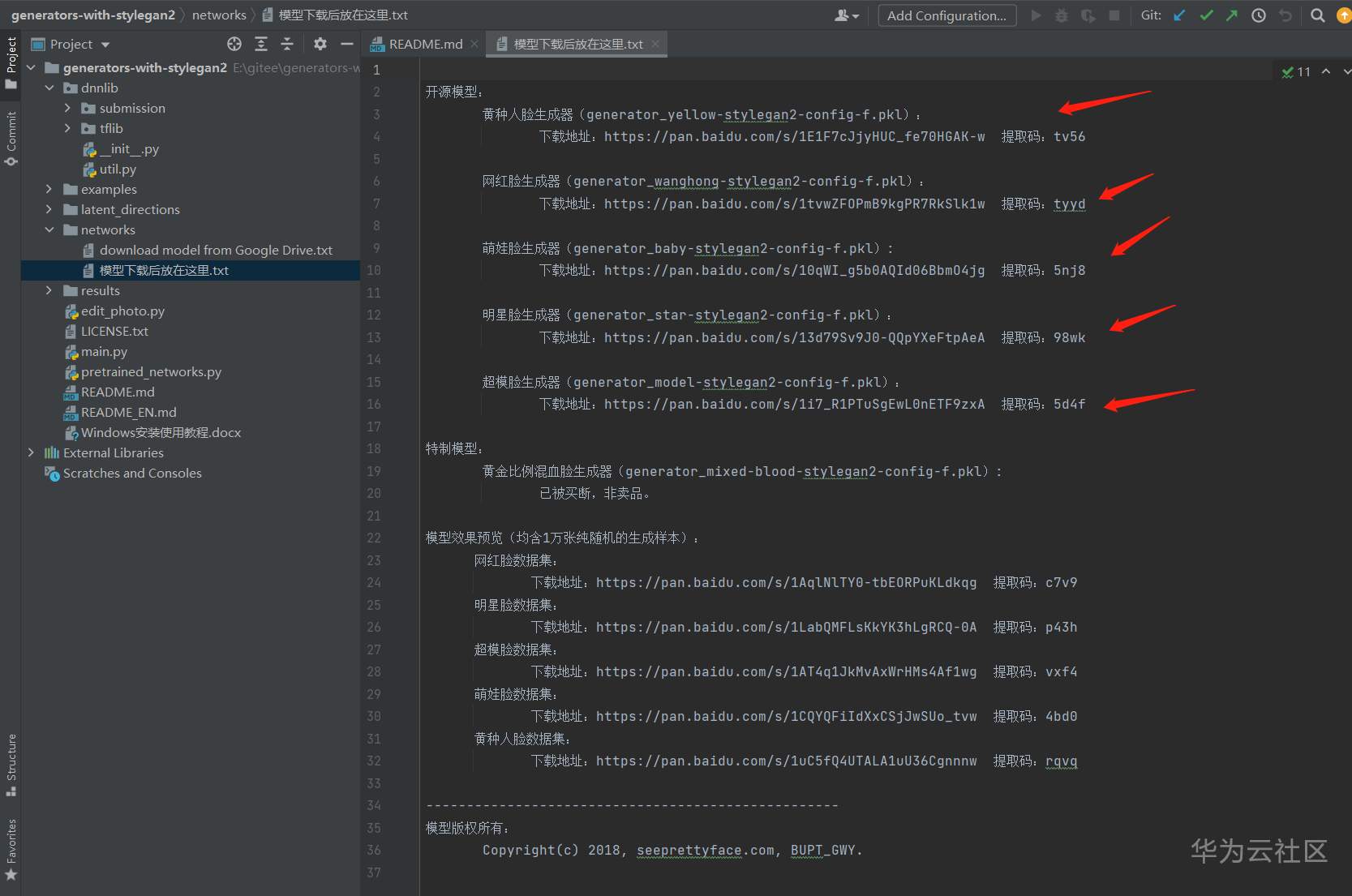 下载完毕后,将其拷贝到 stylegan2工程的 models目录下吧。(新建个models目录)