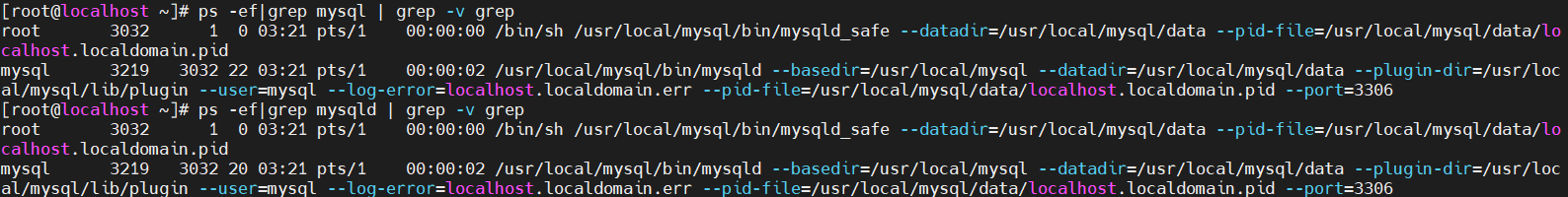 [root@localhost ~]# ps -ef|grep mysqld | grep -v grep