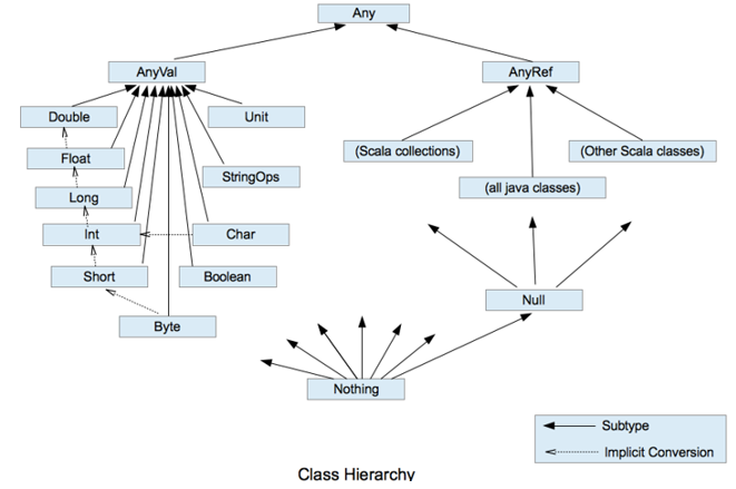 Nothing类型在Scala的类层级的最低端;它是任何其他类型的子类型。 |