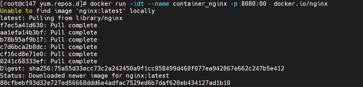 docker run -idt --name container_nginx -p 8080:80 docker.io/nginx