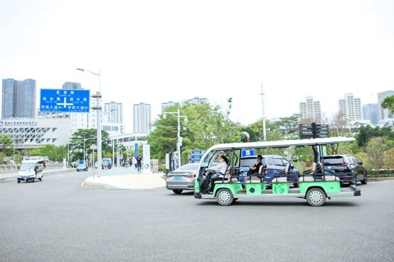 在大学城里为嘉宾准备了校车,这样走累了,可以坐车进出,相当方便。
