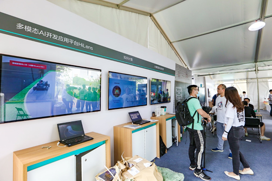 我们先去的第一个展厅是网络人工智能,网络AI这边为开发者提供了免费的微认证课程,并且还提供很多的奖品,我们自然不能放过。在展区发布了一些相关产品,比如日志异常检测服务、KPI异常检测服务等等,都有相关的大佬提供解说。NAIE是主要面向运营商服务的,以云服务的方式,向运营商和第三方业务应用开发者提供各项AI服务,降低AI应用开发的门槛。让网络AI开发更简单、应用更高效,使能自动驾驶网络!