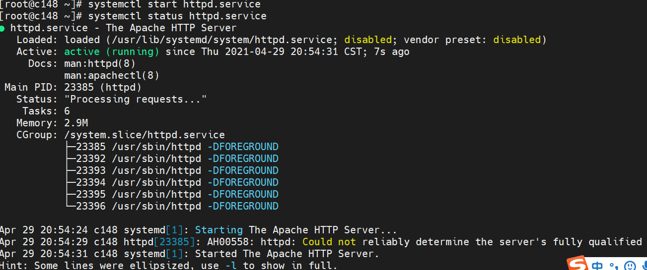 #启动httpd服务并查看http状态