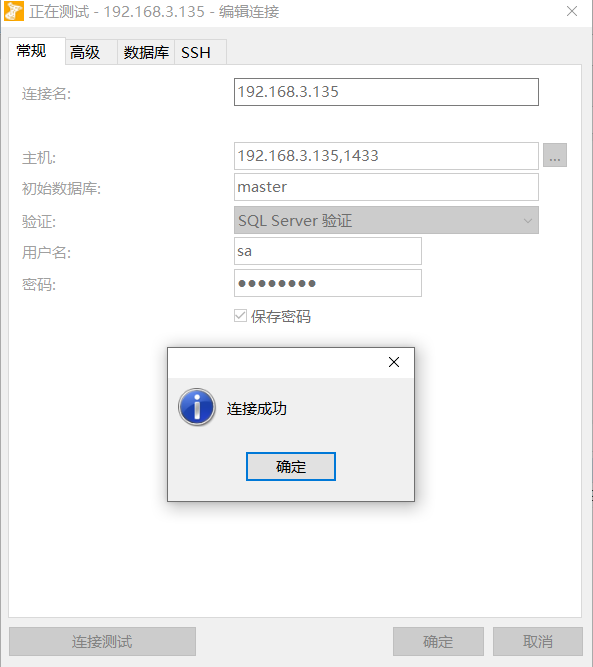 5、此时可用Navicat链接SQLServer,并测试其链接