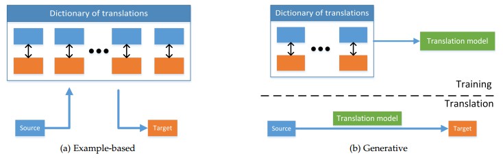 - 两种算法:基于检索的方法,基于组合的方法,前者直接使用搜索到的转化结果,不会修改它们,后者依赖于更复杂的规则,基于大量搜索到的实例建立模态转化结果
