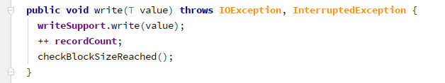 ParquetRecordWriter中,其实是把write操作委托给了一个internalWriter(InternalParquetRecordWriter,用WriteSupport和ParquetFileWriter构造)。