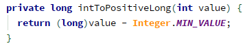 - 使用时,再转回来,IntColumnChunkMetaData.getValueCount -> intToPositiveLong():