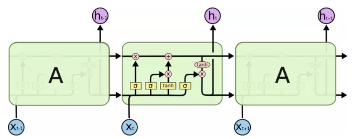 长短时记忆网络 (Long Short Term Memroy, LSTM) 是由 Hochreiter 和 Schmidhuber[1]提出一种特殊的 RNN,可以解决RNN无法处理长距离依赖的问题。LSTM 与RNN有着类似的链式结构,如图1所示。LSTM在RNN的基础上通过增加3个门(gates)来控制单元添加或者删除信息的能力。