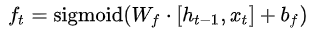 遗忘门(Forget Gate):决定忘记上一时刻Memory cell中的哪些信息,主要通过一个sigmoid的网络层来控制。