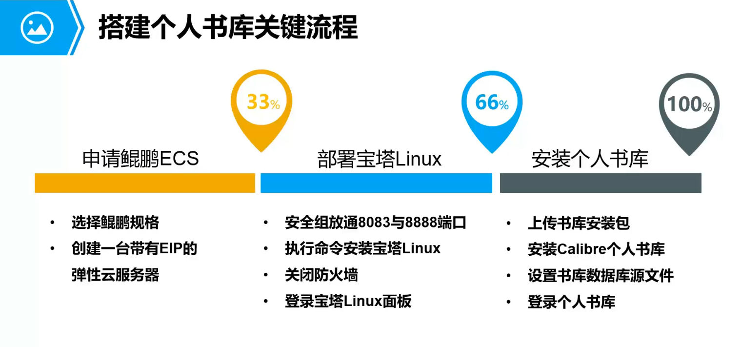 | 搭建个人书库的华为云实践 | 30 | 掌握个人书库构建流程 |