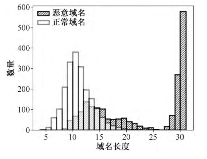 3)元音字母比例分析,正常域名通常采用单词或名字的拼音,方便使用者记忆; 同时为了具有较好的可读性,正常域名往往会插入一定的元音字母,让域名读起来更顺口。恶意域名由于随机生成,不会考虑可读性,因而正常域名的元音字母的比例会比恶意域名的高。