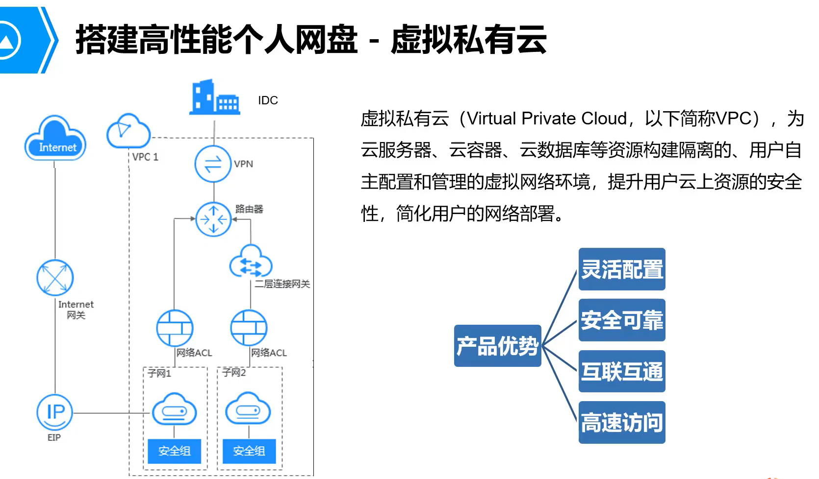 | 高性能个人网盘搭建所需华为云技术 | 11 | 了解搭建高性能网盘所需的华为云技术,如ECS、VPC、EIB等 |