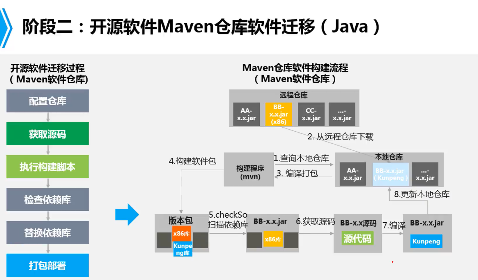含有源代码的软件从x86平台移植到鲲鹏平台,有以下两种方式: