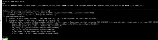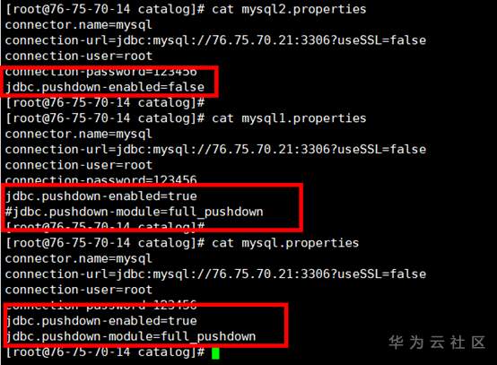 首先,在演示系统中配置了三个catalog,他们都指向同一个数据源,不过下推的设置不一样,mysql2不下退,mysql1部分下推(join不下推),mysql全下推。