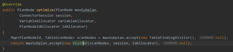 第四:实现PlanOptimizer里面的optimize函数,主要是实现一个visitor去visit执行计划树
