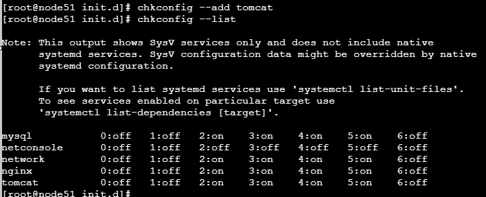 然后使用chkconfig --list查看服务是否添加成功