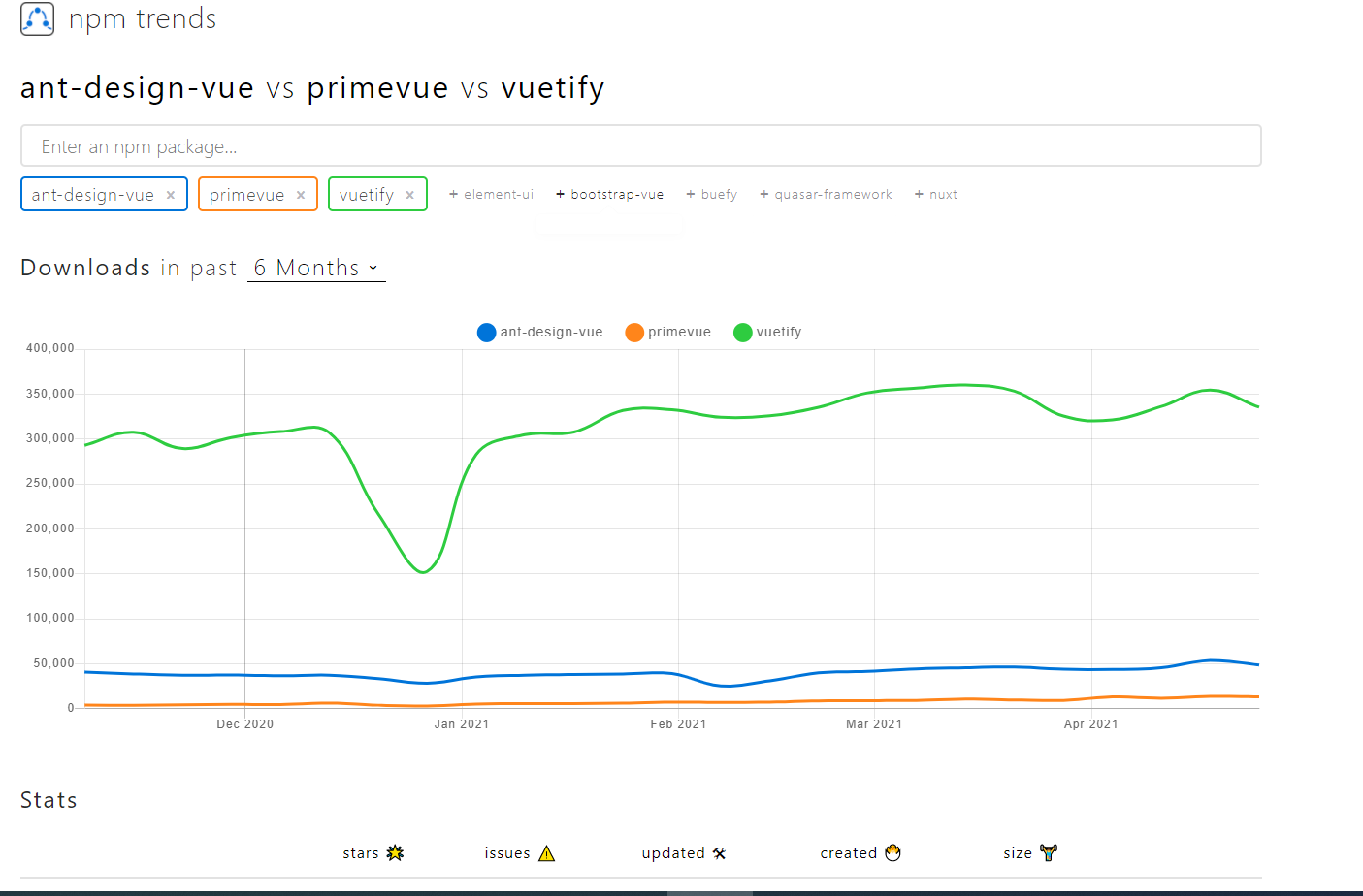 [npm trends] ant-design-vue vs primevue vs vuetify