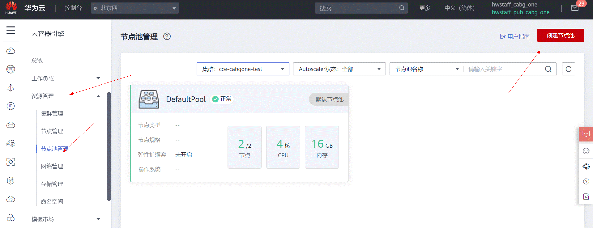 - 回到资源管理->节点池管理,创建一个新的资源池