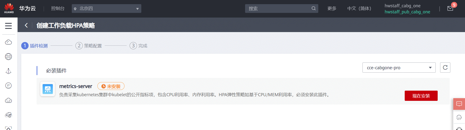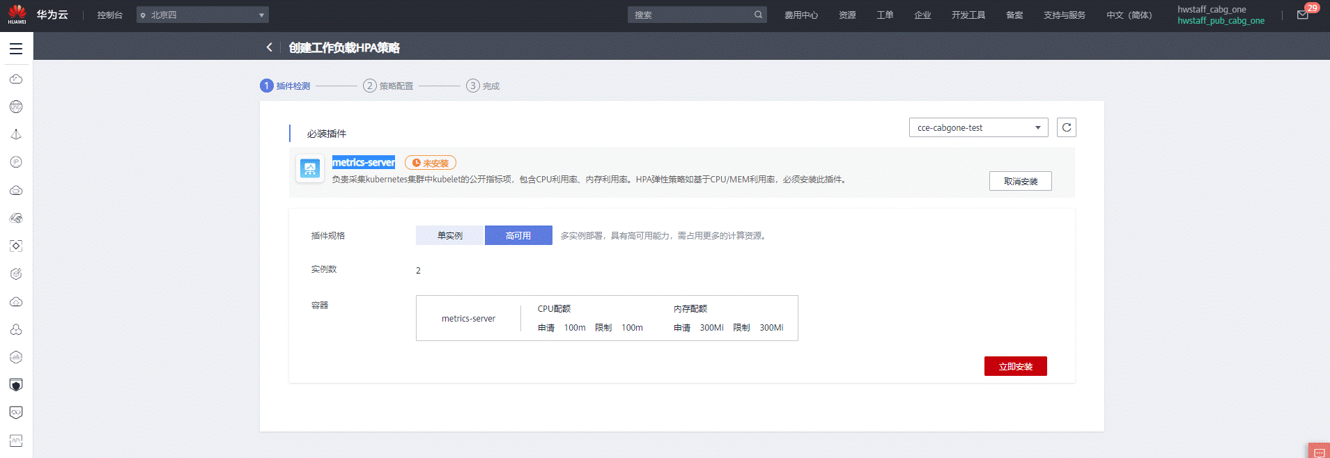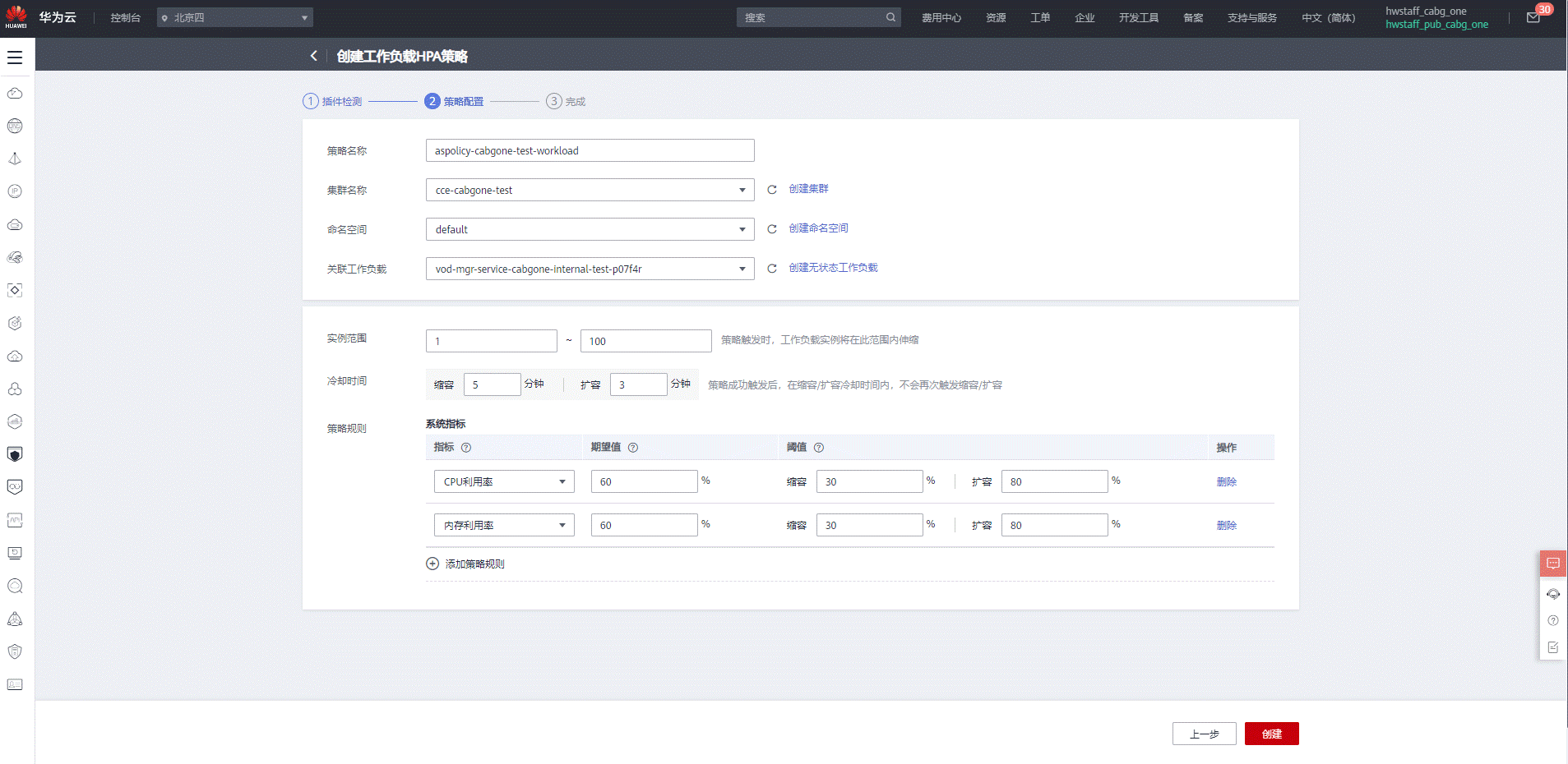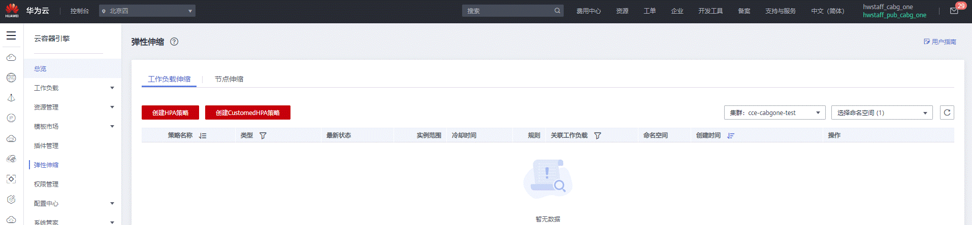 首先,进入弹性伸缩->工作负载伸缩,创建HPA策略