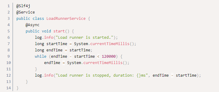 首先写了一个很简单的压测API,主要逻辑就是起一个线程死循环,API入参传入线程数,传导压力到容器内部,持续120秒。