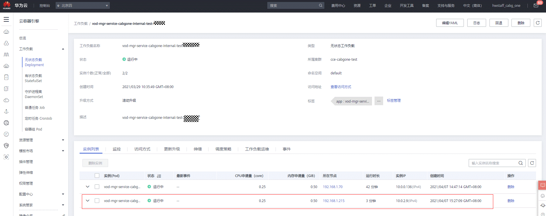 回到CCE的工作负载页面,可以看到已经增加了一个Pod