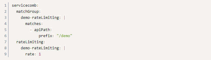 2. application.yaml文件中增加如下配置,意思就是对前缀为/demo的API进行染色,限流为1个QPS