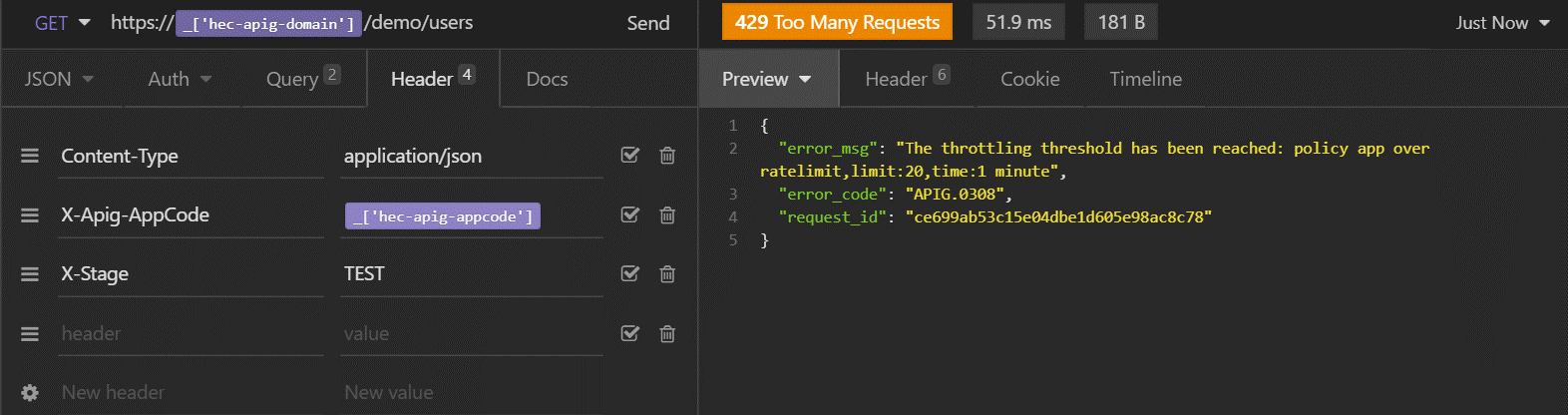 通过Insomnia敲了20次回车以后,响应变成429 Too Many Requests,符合预期。