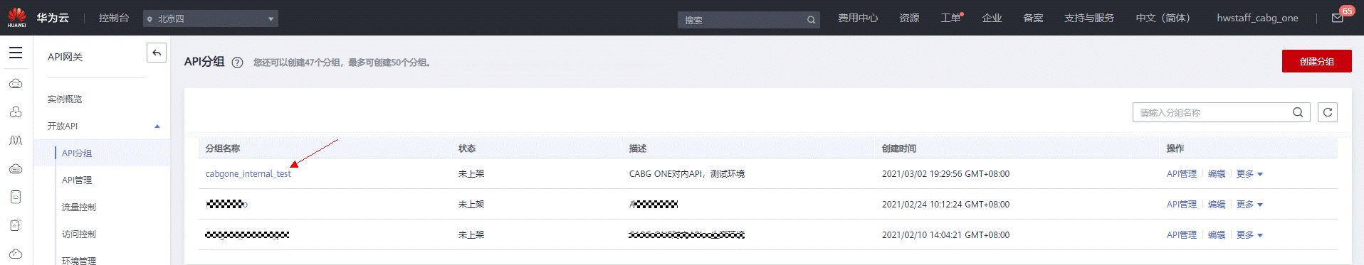 - 默认每个API分组会生成一个子域名,前缀和API分组的ID一致