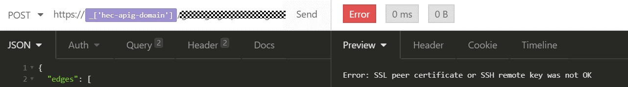 - 通过Insomnia(一个类似PostMan的工具)进行验证。验证之前,确保我开启了Validate certificates