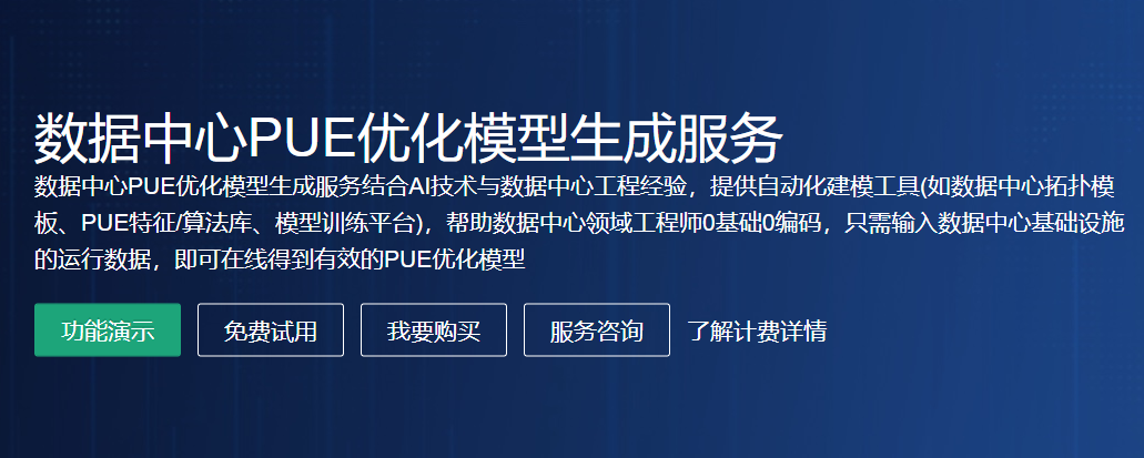 数据中心PUE优化模型生成服务结合AI技术与数据中心工程经验,提供自动化建模工具(如数据中心拓扑模板、PUE特征/算法库、模型训练平台),帮助数据中心领域工程师0基础0编码,只需输入数据中心基础设施的运行数据,即可在线得到有效的PUE优化模型,一起来试试?