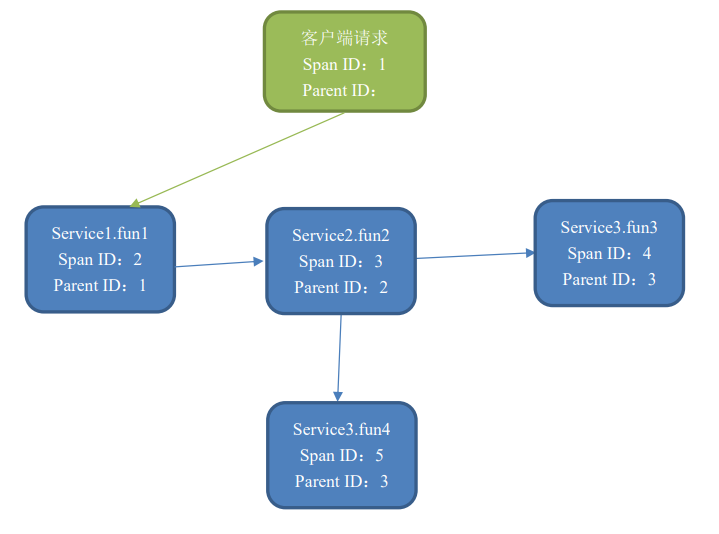 - Span:基本工作单位,一次单独的调用链可以称为一个 Span,Dapper 记录的是 Span 的名称,以及每个 Span ID 和Parent ID,以重建在一次追踪过程中不同 Span 之间的关系,图中一个矩形框就是一个 Span,前端从发出请求到收到回复就是一个 Span。