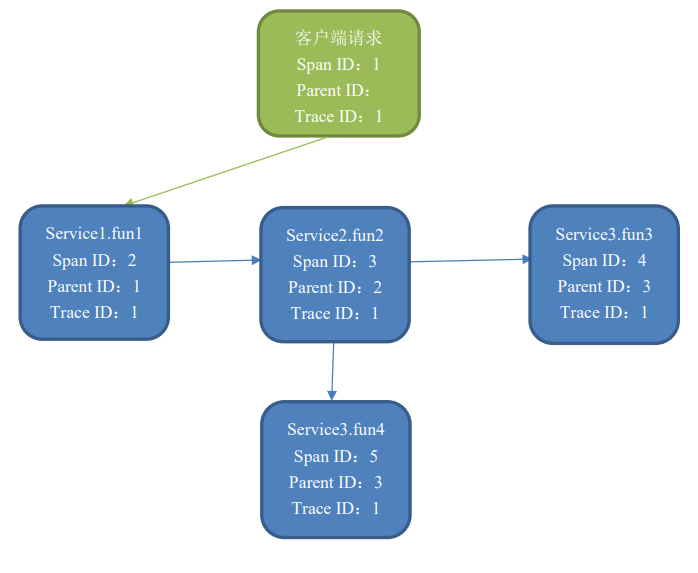 开始跟踪的初始跨度称为 root span 。该跨度的 ID 的值等于trace ID。