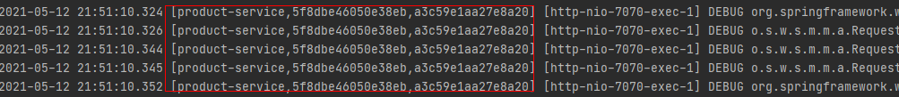 分别为applicationName,TraceId,SpanId。到此Sleuth配置就完成了。