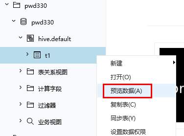步骤9:选择需要查看的表,右键选择“预览数据”,即可查看表信息。