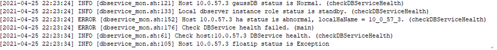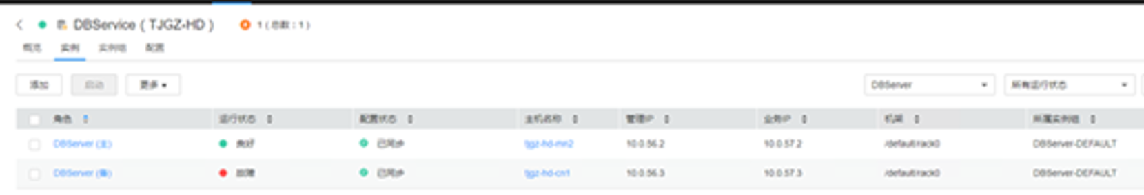 【问题现象】DBservice备实例故障,重启该实例后显示恢复中,然后继续显示故障,具体现象如下所示: