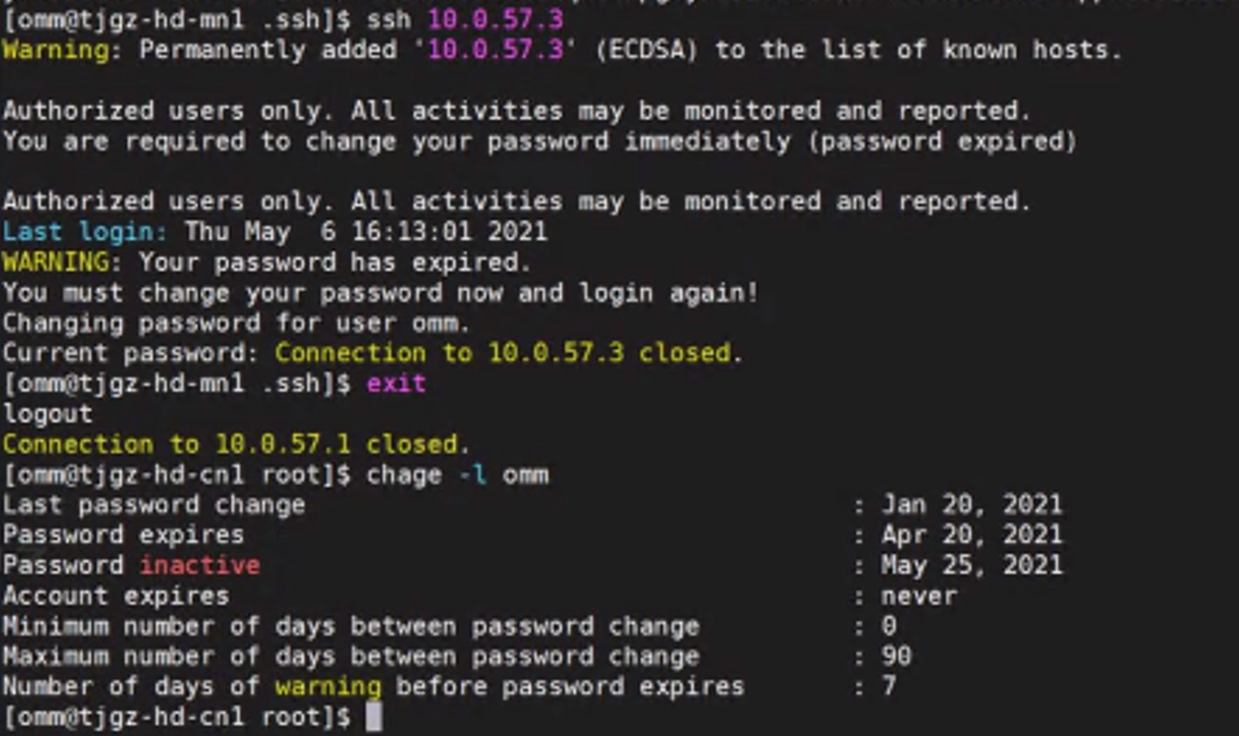 2、查看修改后的OMM密码有效期,如下显示never表示永久有效