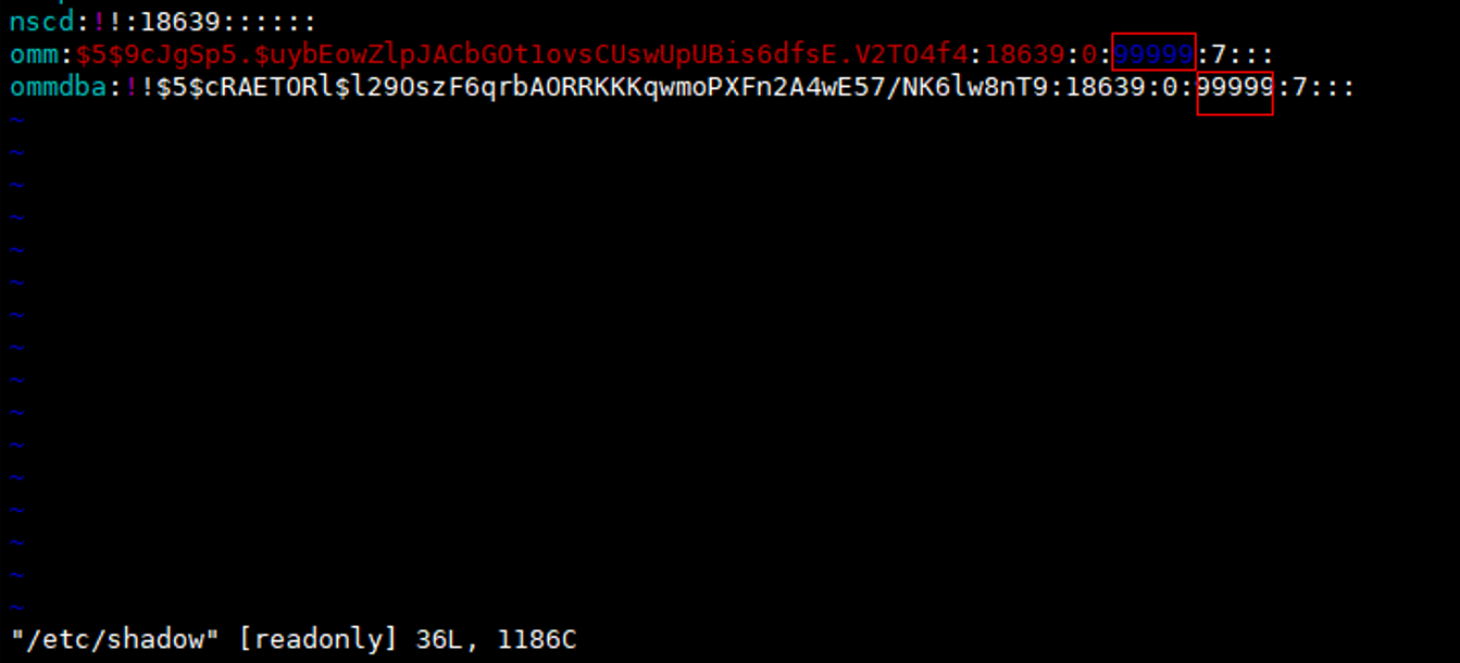 方案一:使用如下命令延长OMM用户密码有效期(临时规避)