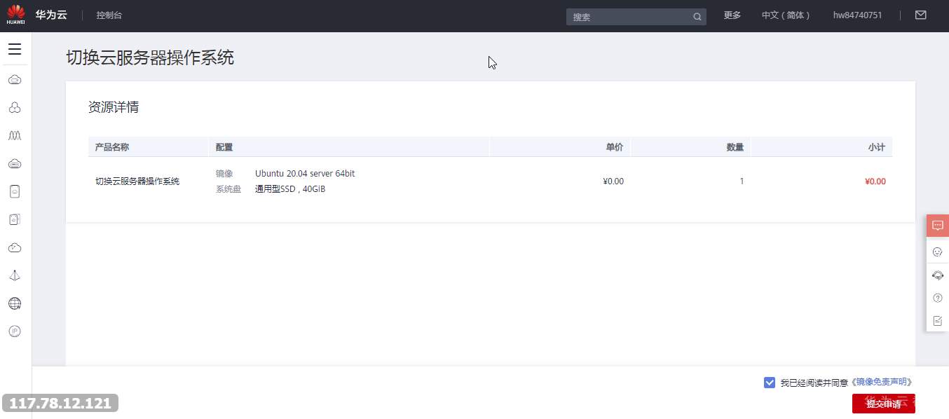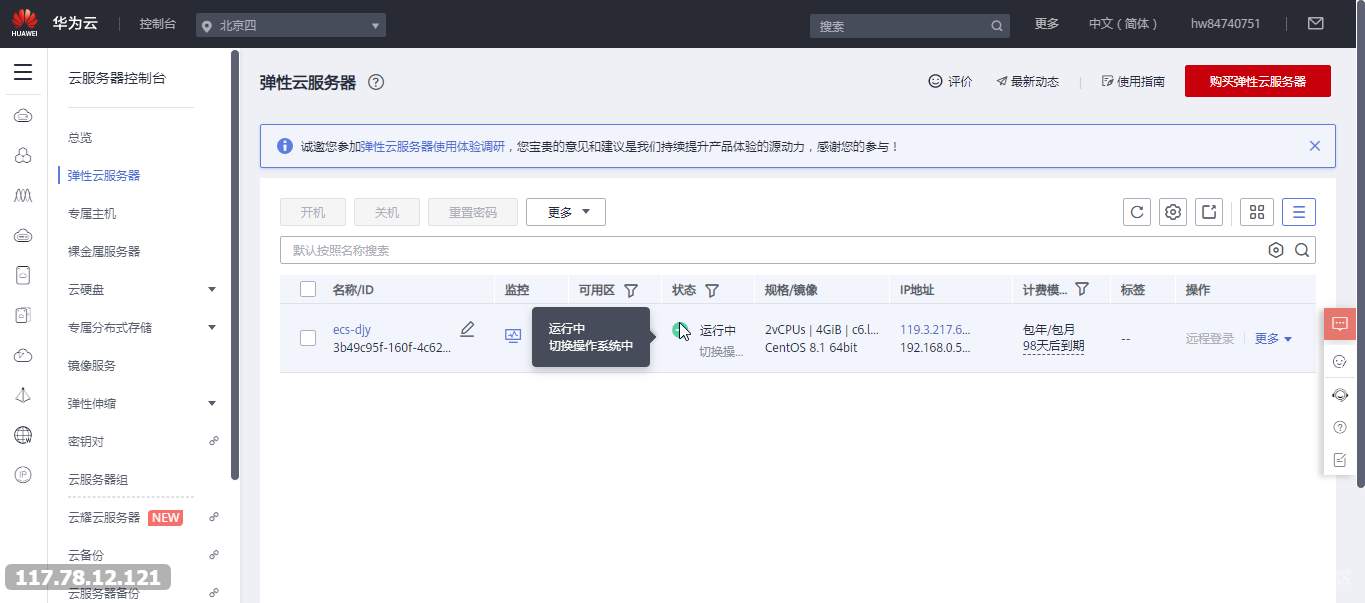 由于服务器目前装的系统是server ,所以先换一下操作系统。华为云的弹性服务器挺好用的,可以自主变更系统,非常友好。