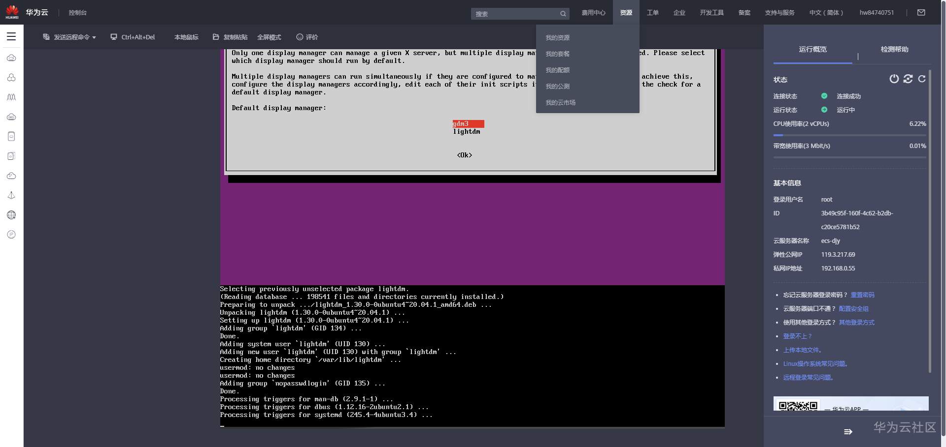 华为云弹性云服务器Ubuntu 20.04 server 64bit安装图形界面