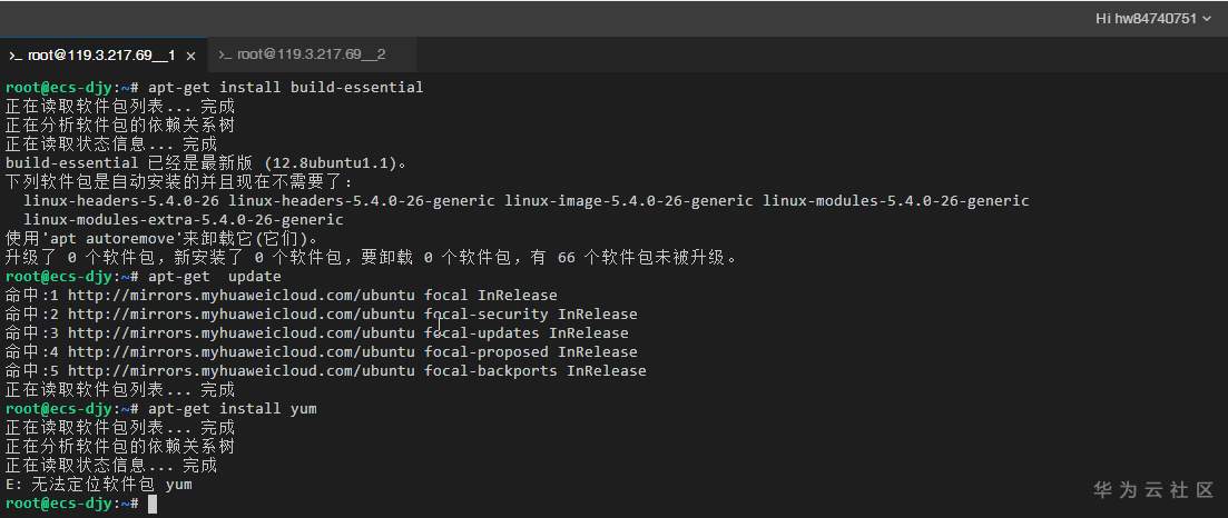 【摘要】 华为云服务器 Ubuntu20.04 安装yum报错【无法定位软件包yum】解决