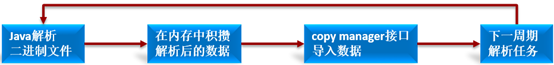 源数据推送二进制流-->解析二进制-->解析后的数据导入数据库