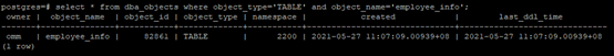 更新测试表employee_info,测试dba_objects视图是否可以保存对象的最后修改时间,修改行为包括ALTER操作和GRANT、REVOKE操作:
